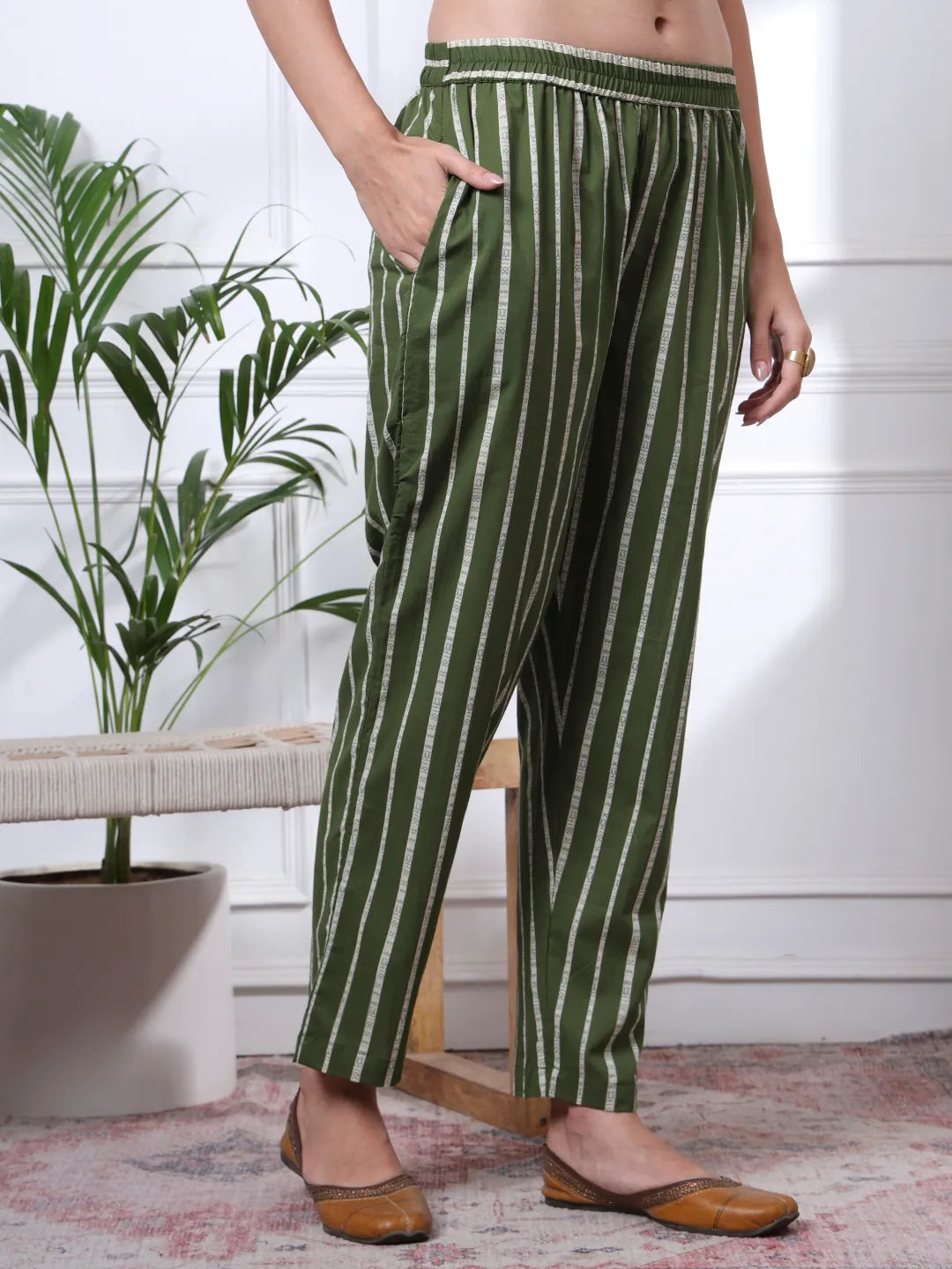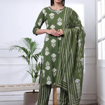 Green Pure Cotton Floral Thread Work Kurta Dupatta Pant Set