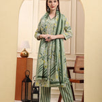 Green Floral Straight kurta Trouser Dupatta Set kurta Design Floral,Thread_Work Straight Shape Three quarter sleeve V-Neck Calf Length kurta Straight Hem Side Slits Machine Weave Cotton Trouser Design:One pocket Pure Cotton Trouser Slip-On Waist Size & Fit Material & Care Pure Cotton Dry Clean