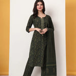 Green Pure Cotton Paisley Print Kurta Dupatta Pant Set