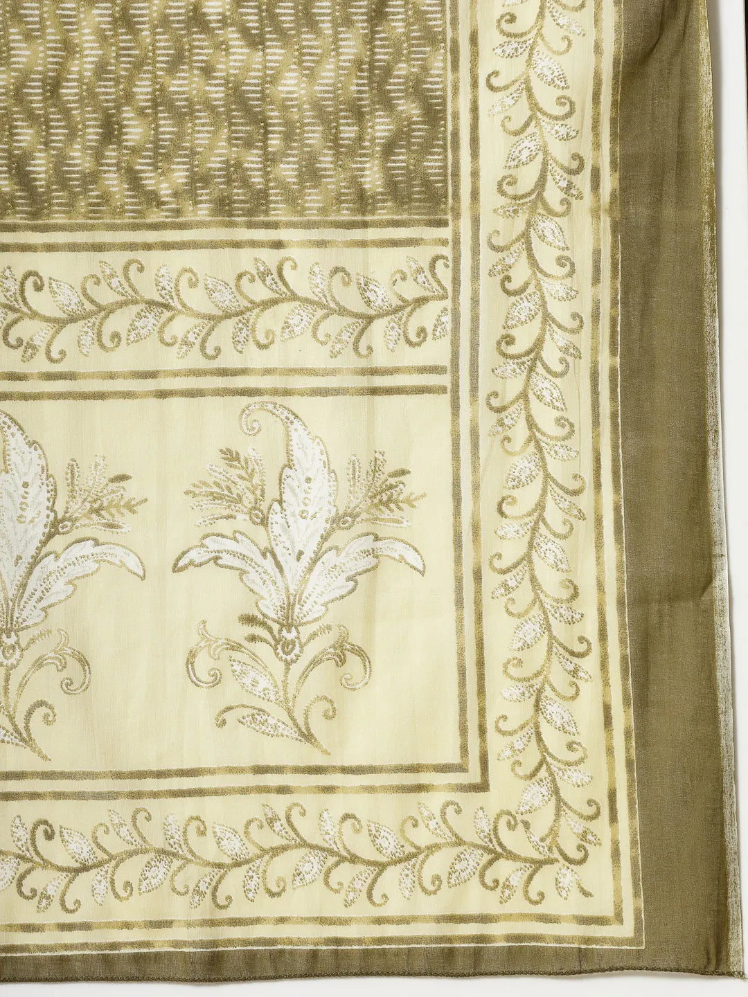 Green Pure Cotton Paisley Thread Work Kurta Dupatta Pant Set