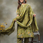 Green Sequins Work Pure Cotton A-Line Kurta Trouser Dupatta Set