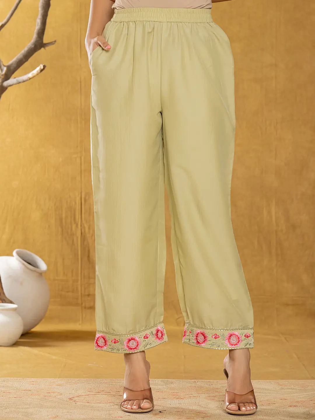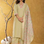 Green Silk Blend Pakistani Style Kurta Dupatta Set