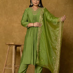 Green embroidered Kurta with Trousers with dupatta