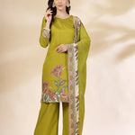 Green Silk Straight Kurta With Palazzo Dupatta Set