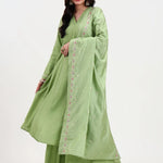 Green Solid Roman Silk Anarkali Kurta Palazzo Dupatta Set