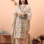 Green Straight Thread Work Kurta Trouser Dupatta Set