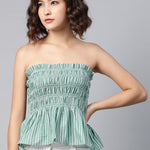 Green Stripes Tube Peplum Top, in Poly Cotton fabric, Unlined, Crop Length, Comfort Fit, NA, Flared Hemline and features Smocking Detail