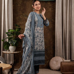 Grey Floral Print Pure Cotton Schiffli Straight Kurta And Trouser with dupatta Set