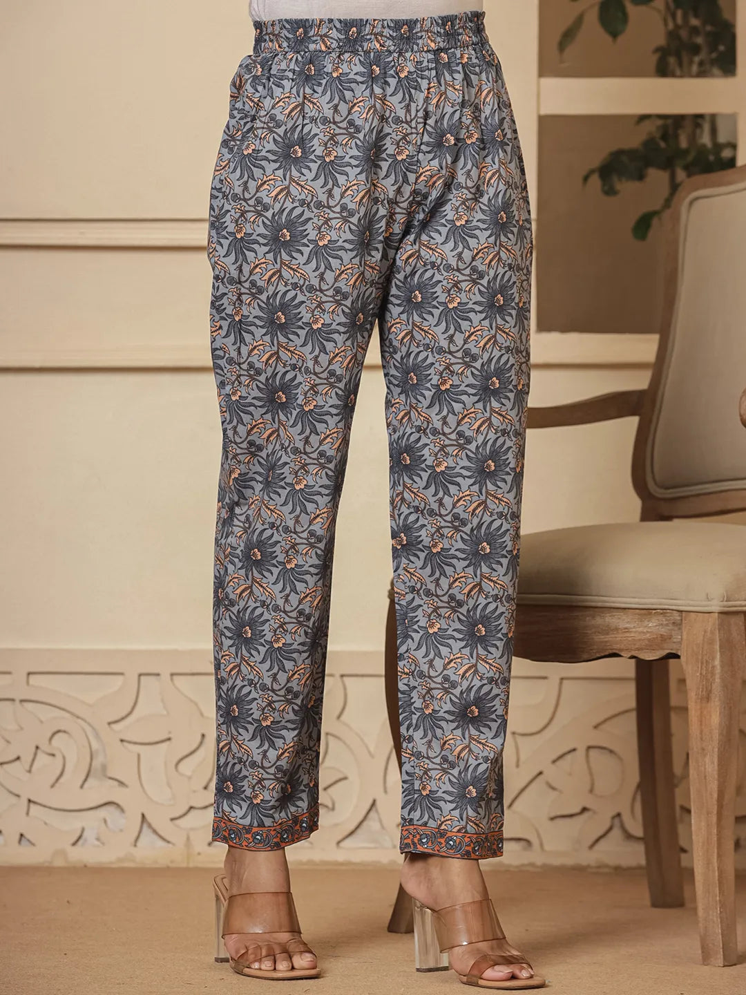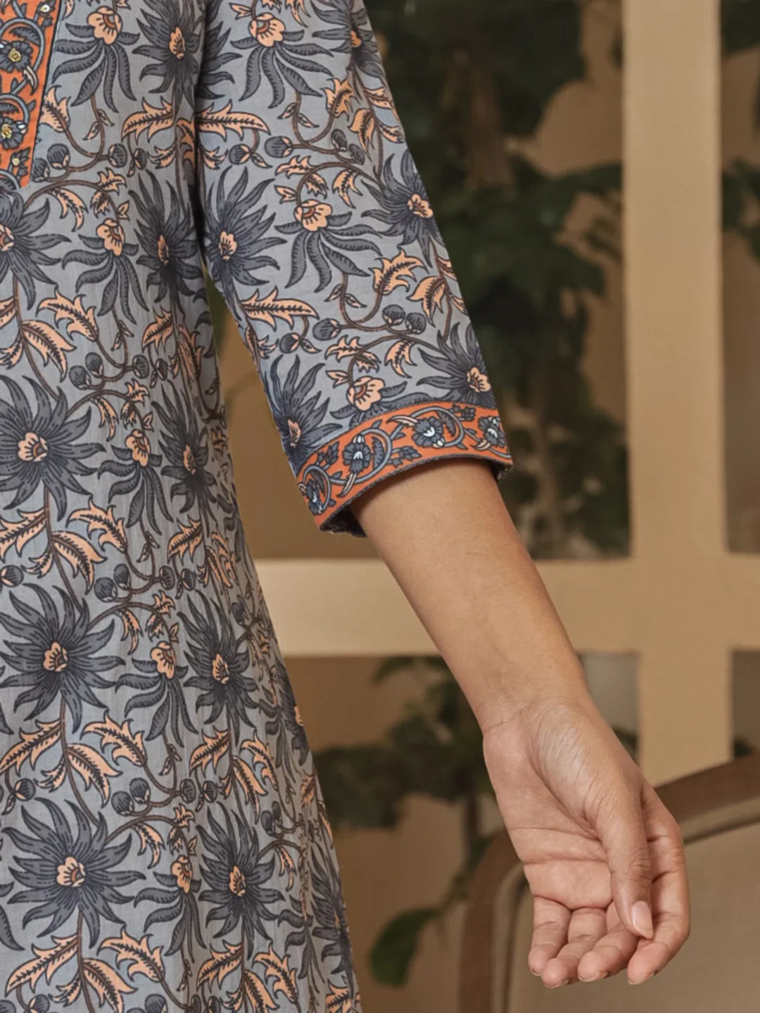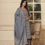 Grey Cotton Sequins Work Kurta Dupatta Set
