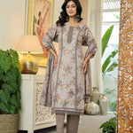 Grey Cotton Straight Lace Work Kurta Dupatta Set