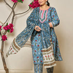 Grey Cotton Straight Plus Size Kurta Dupatta Pant Set