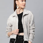 Grey Drawstring Faux Fur Jacket, in Fur fabric, Unlined, Regular Length, Comfort Fit, Zipper Closure, Straight Hemline and features Drawstring Detail At Hem