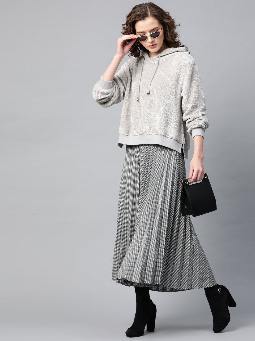 Grey Hooded Faux Fur Sweatshirt