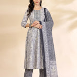Grey Pure Cotton Anarkali Dupatta Pant Set