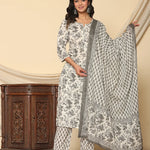 Grey Pure Cotton Kurta Dupatta Pant Set