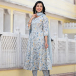Grey printed Kurta with Trouser & dupatta