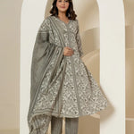 Grey Sequins Work Pure Cotton Anarkali Kurta And Dupatta Set