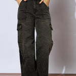 Black Wash Multi Pockets Straight Jeans , in Denim fabric, Unlined, Full Length , Straight Fit, Button Closure, Straight Hemline and features Multi Pockets Detail