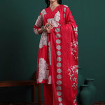 Hot Pink Cotton Floral Print A-Line Kurta Pants & Dupatta Set