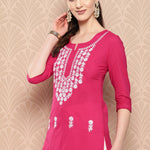Hot Pink Floral Embroidered Pure Cotton Kurta