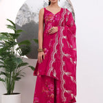 Hot Pink Silk Blend A-Line Kurta Palazzo Set