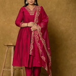 Hot Pink embroidered Kurta with Trousers with dupatta