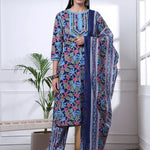 Indigo Blue Lace Work Cotton Straight Kurta Trouser Dupatta Set