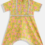 A Line Cotton Fabric Yellow Color Floral Print Dress With Gotta Work At Neck & Bottom