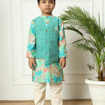 Boys Straight style Kota doria fabric Sea Green color kurta and Pajama