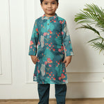 Boys Straight style Kota doria fabric Teal color kurta and Pajama