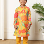 Boys Straight style Kota doria fabric Yellow color kurta and Pajama
