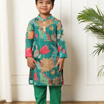 Boys Straight style Kota doria fabric Green color kurta and Pajama