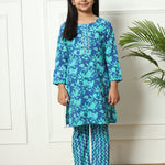 Straight style Cotton fabric Blue color Kurti with Bottom