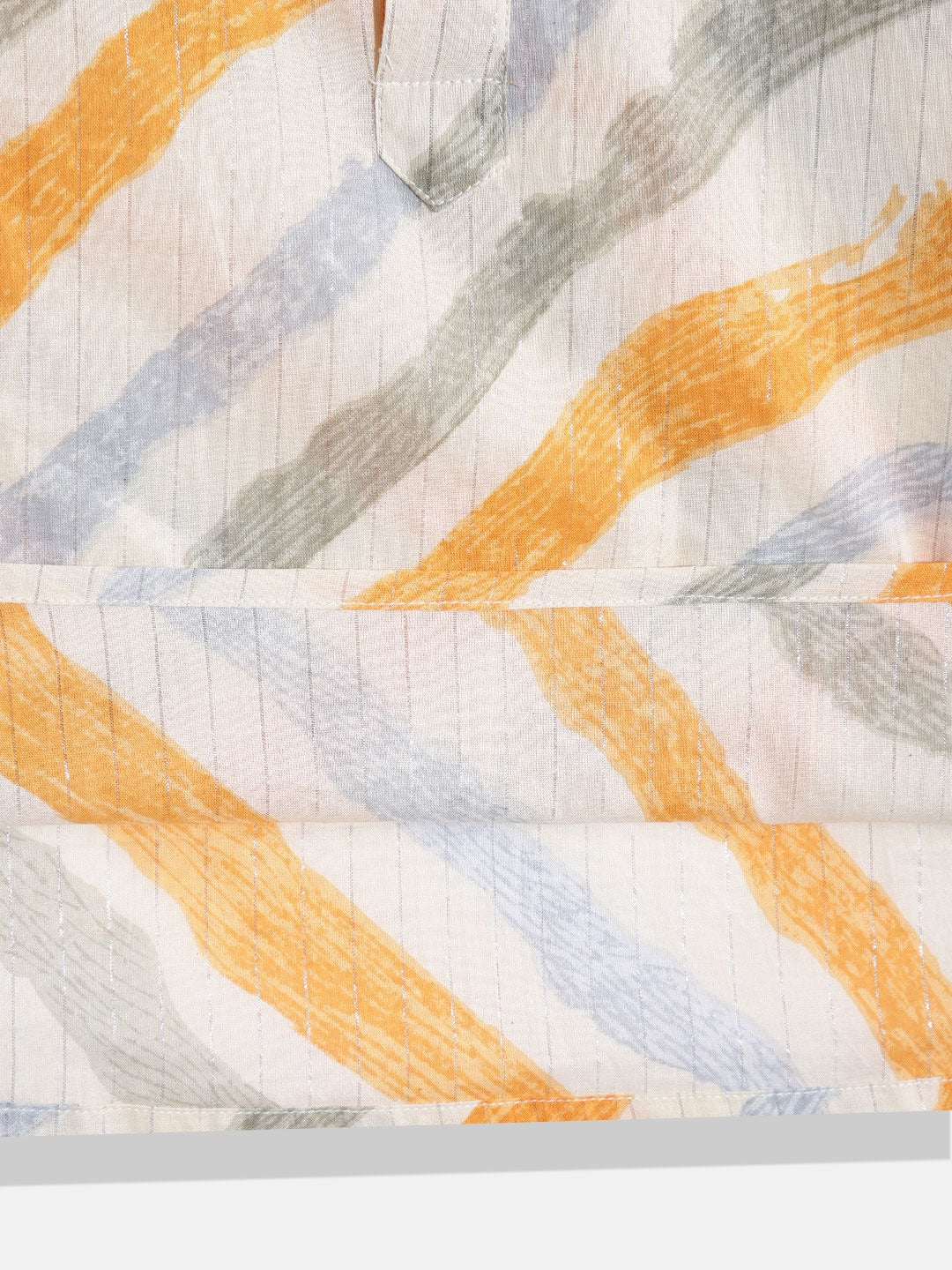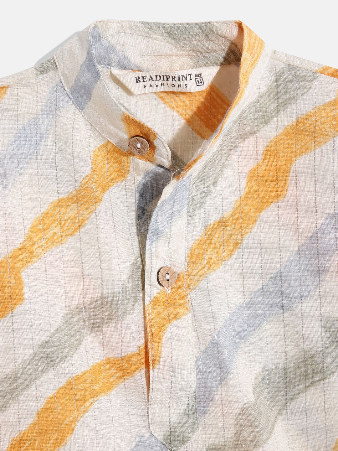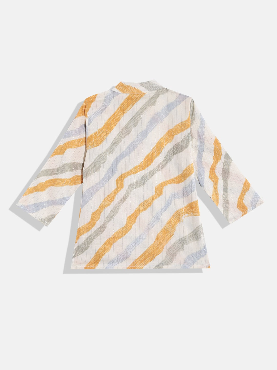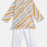 Straight Style Cotton Fabric Cream Color Leheriya Printed Kurta With Pajama