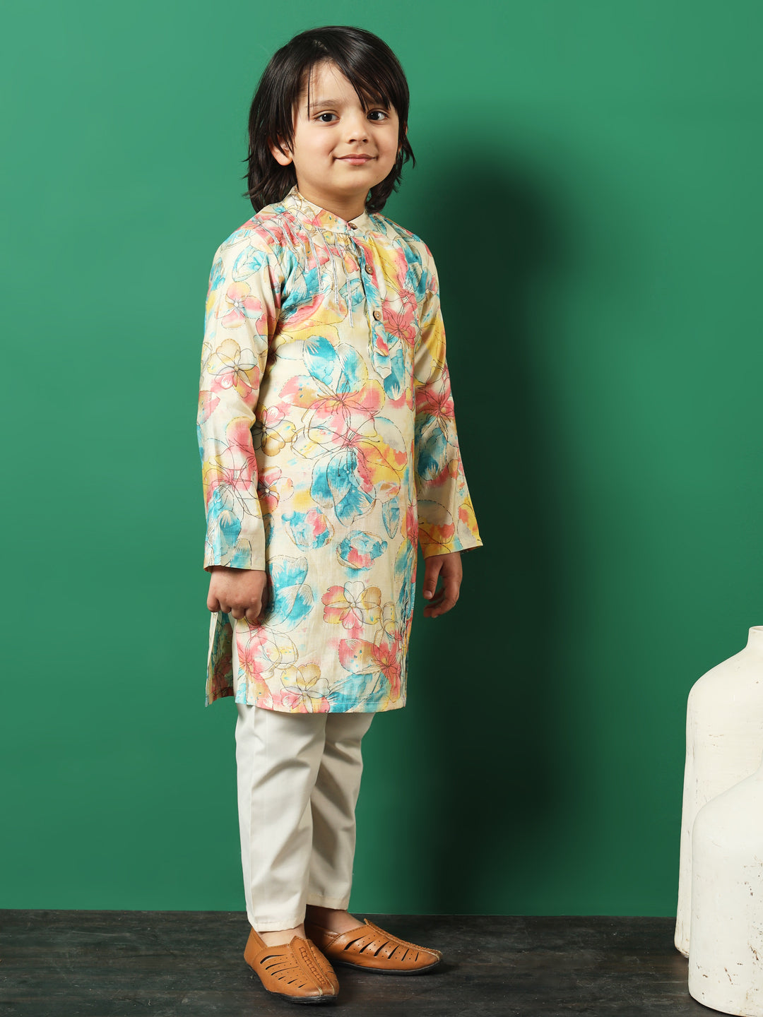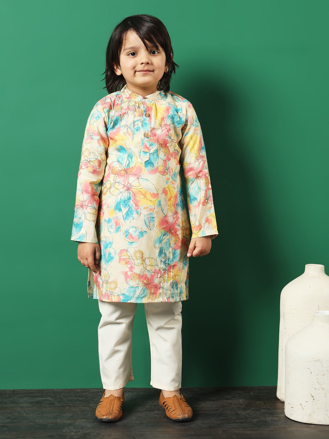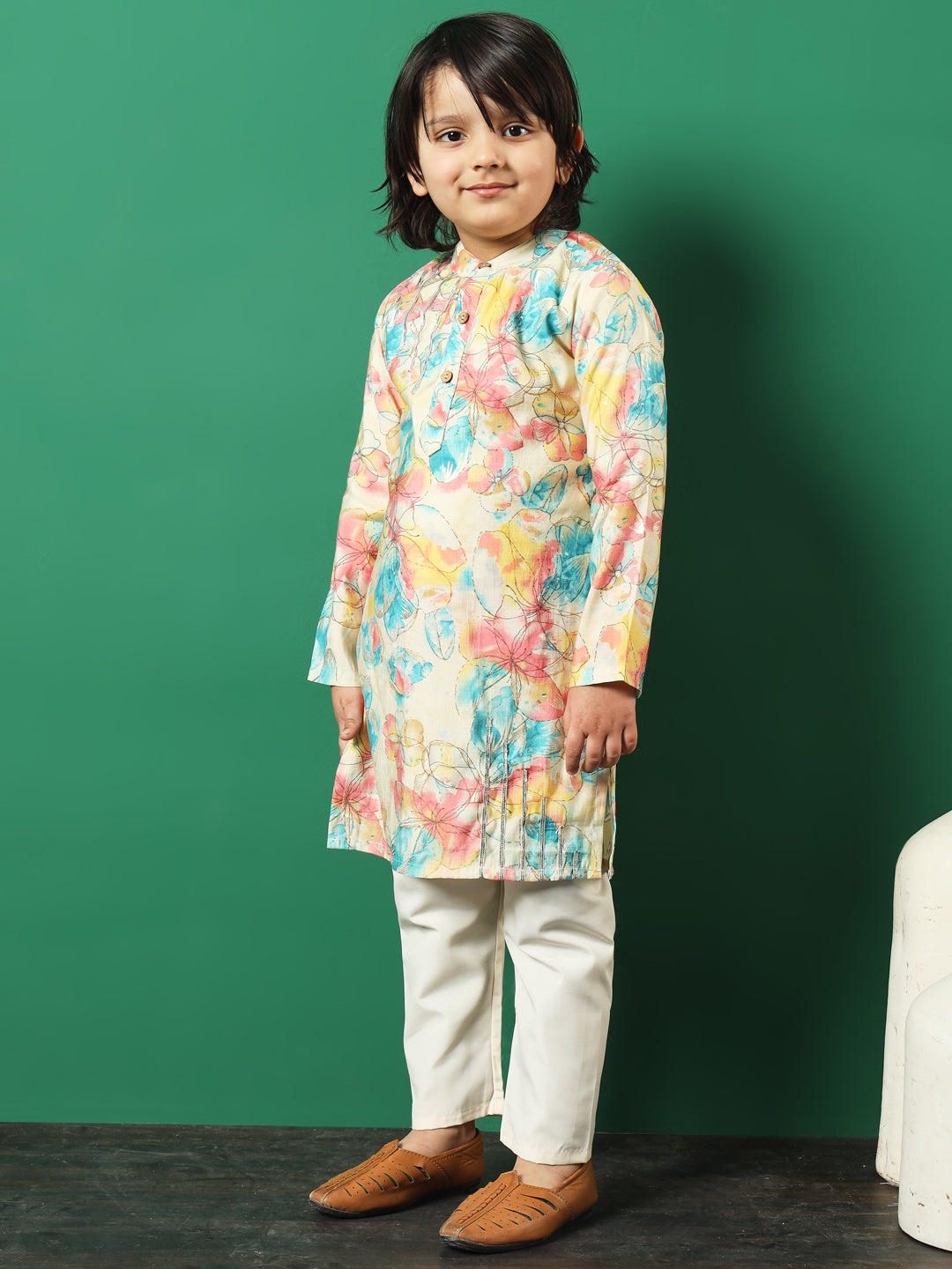 Straight Style Chanderi Silk Fabric Multi Color Floral Printed Kurta And Pajama