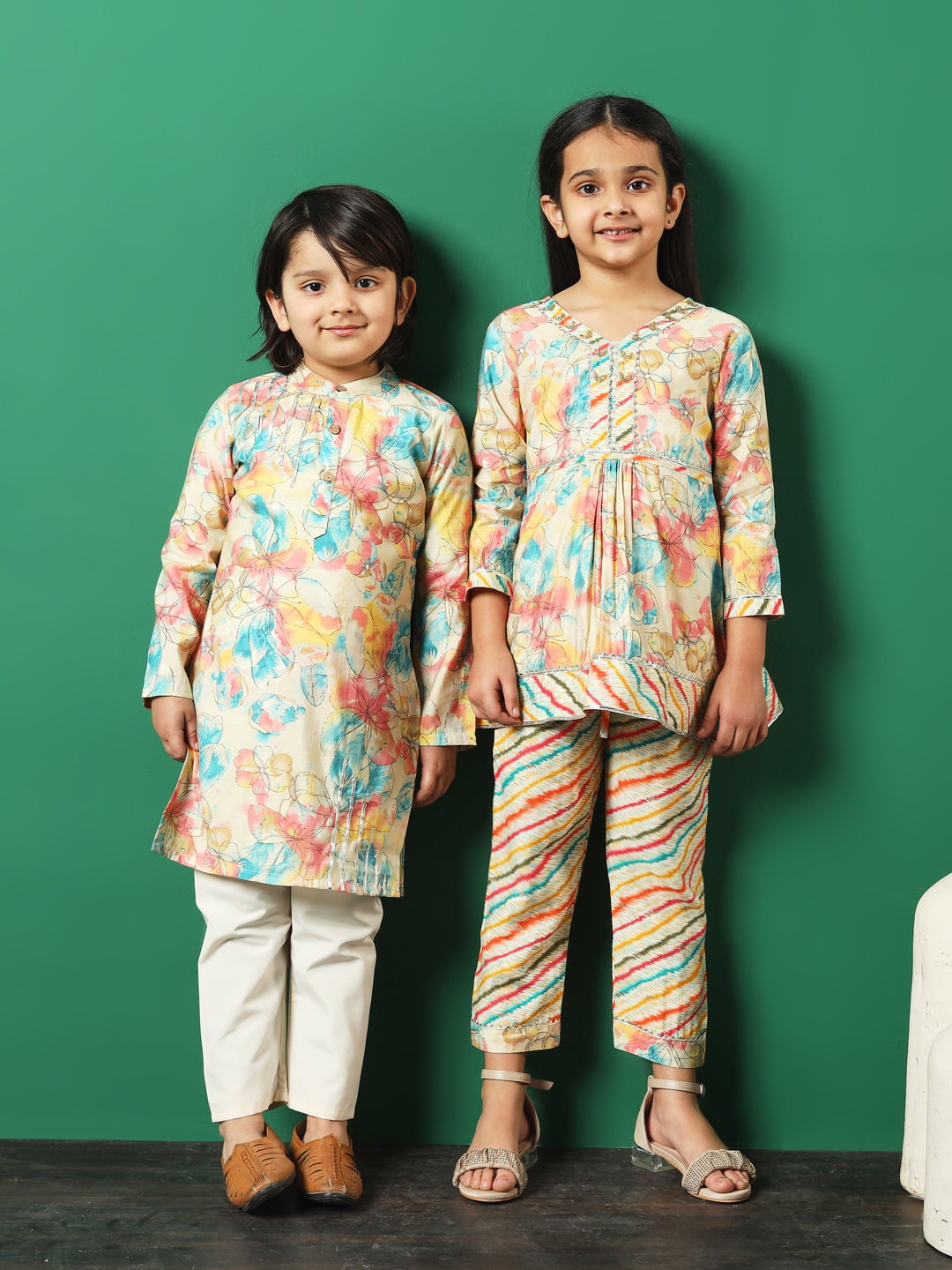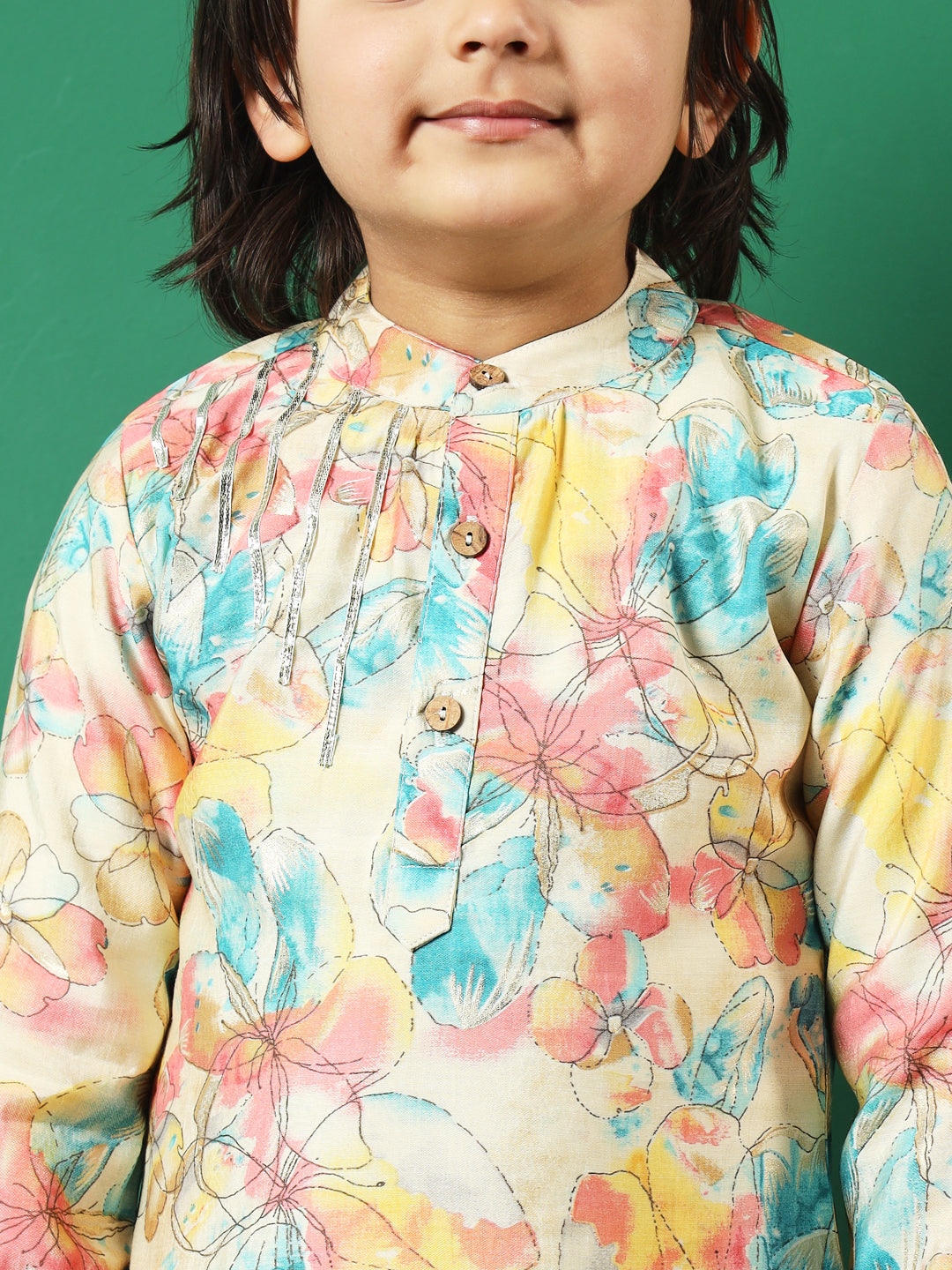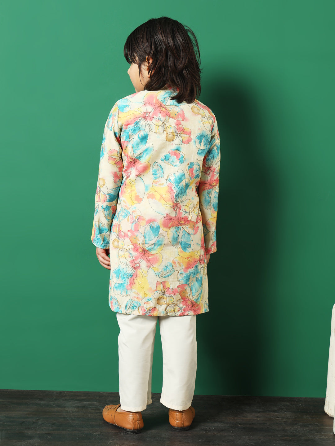 Straight Style Chanderi Silk Fabric Multi Color Floral Printed Kurta And Pajama