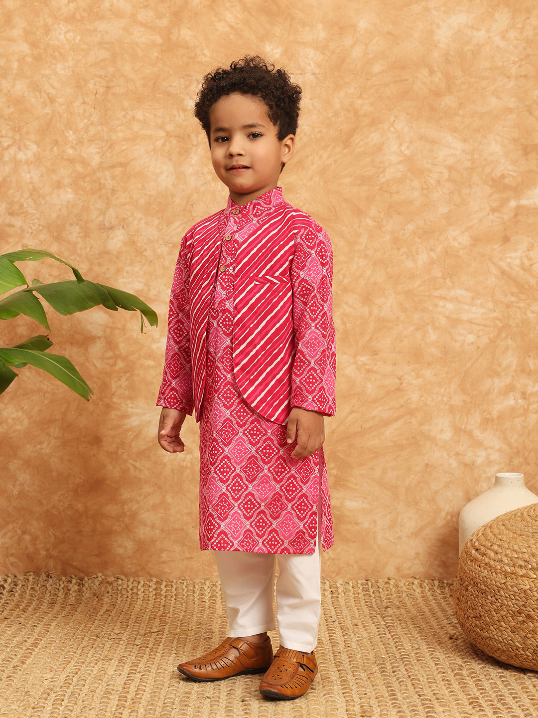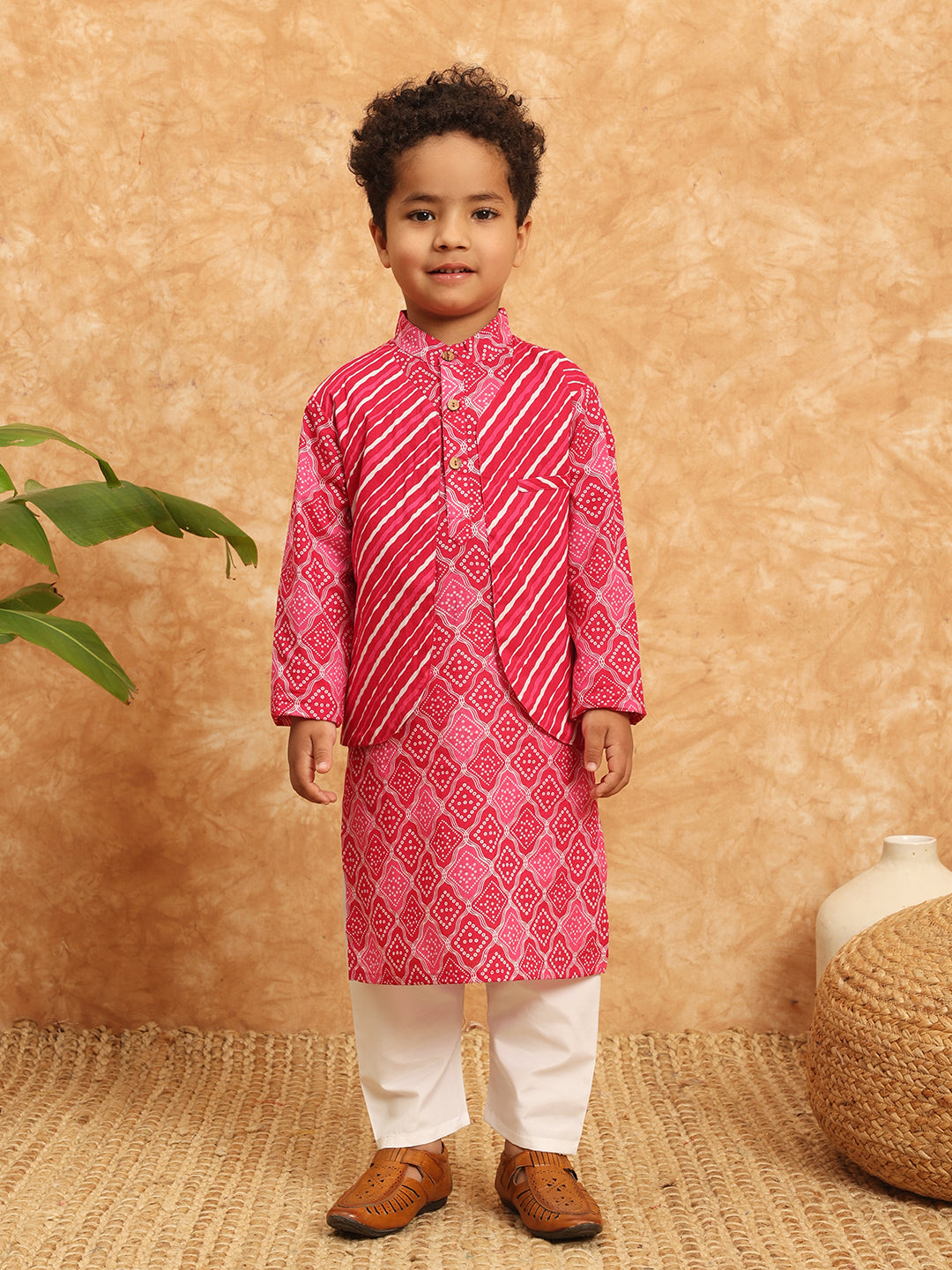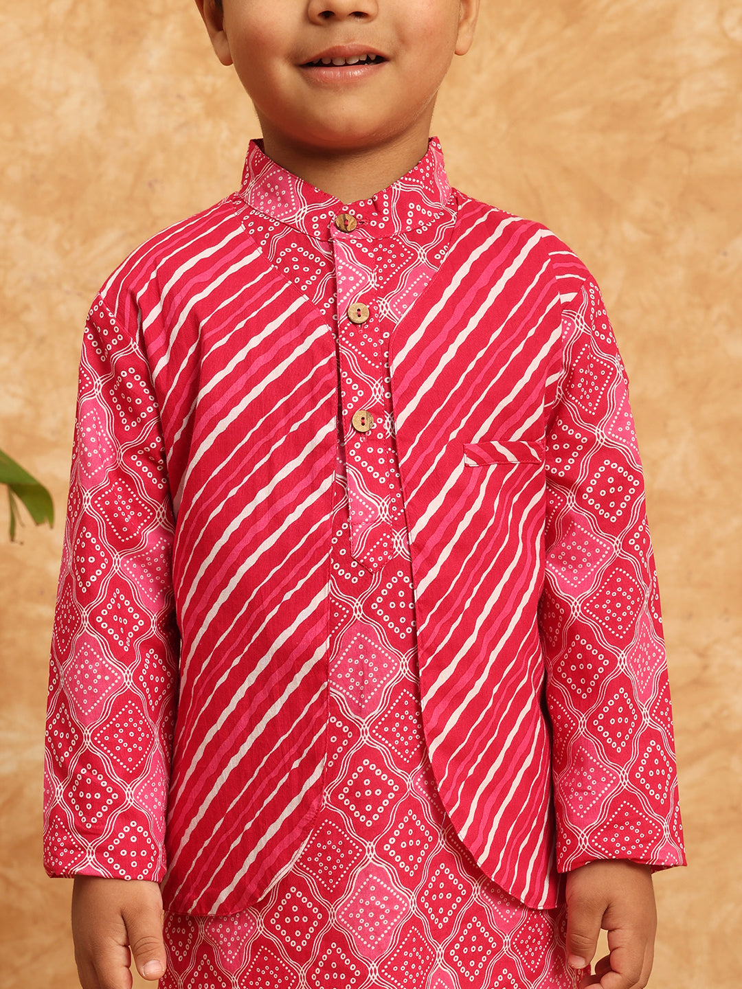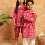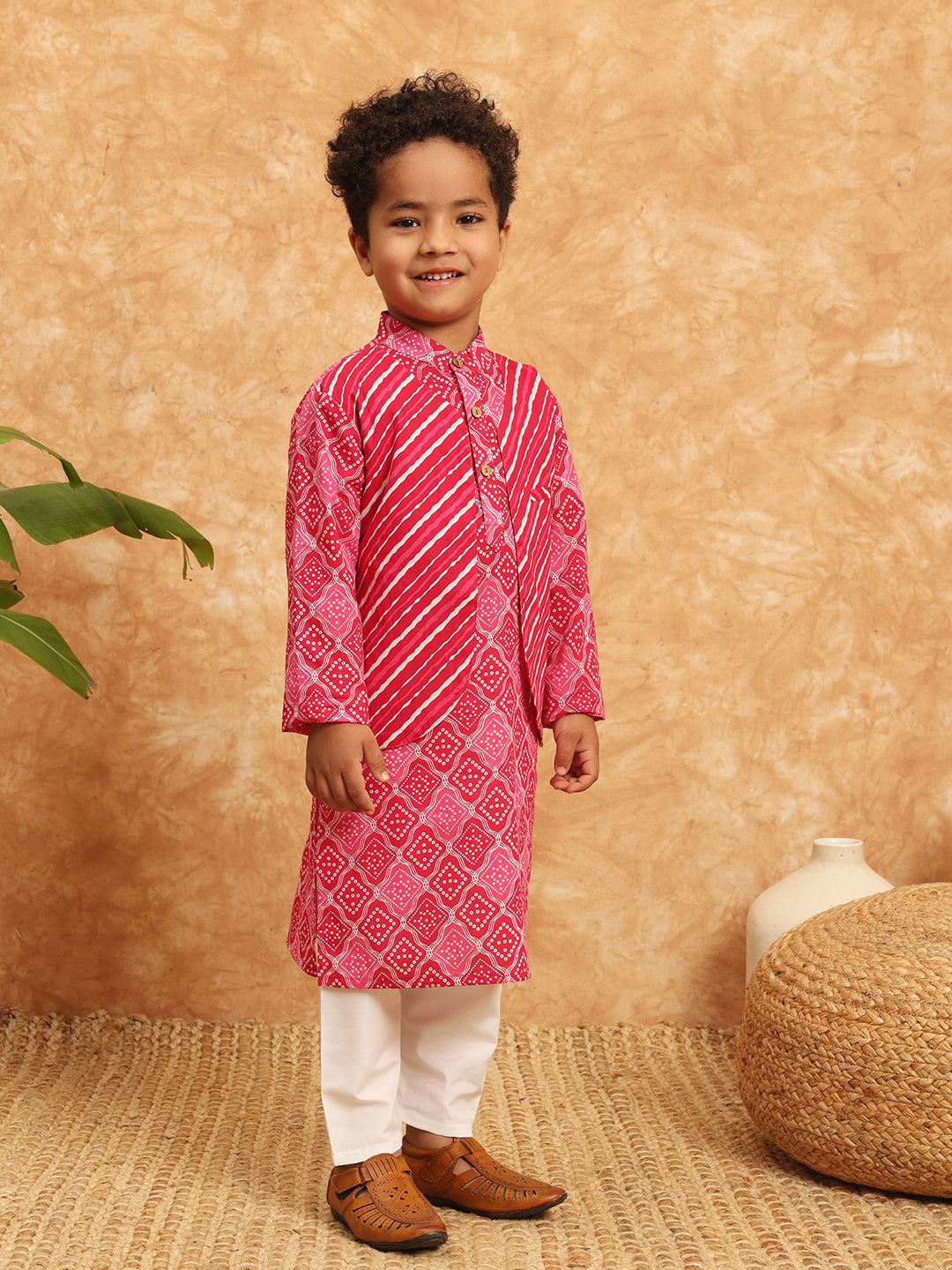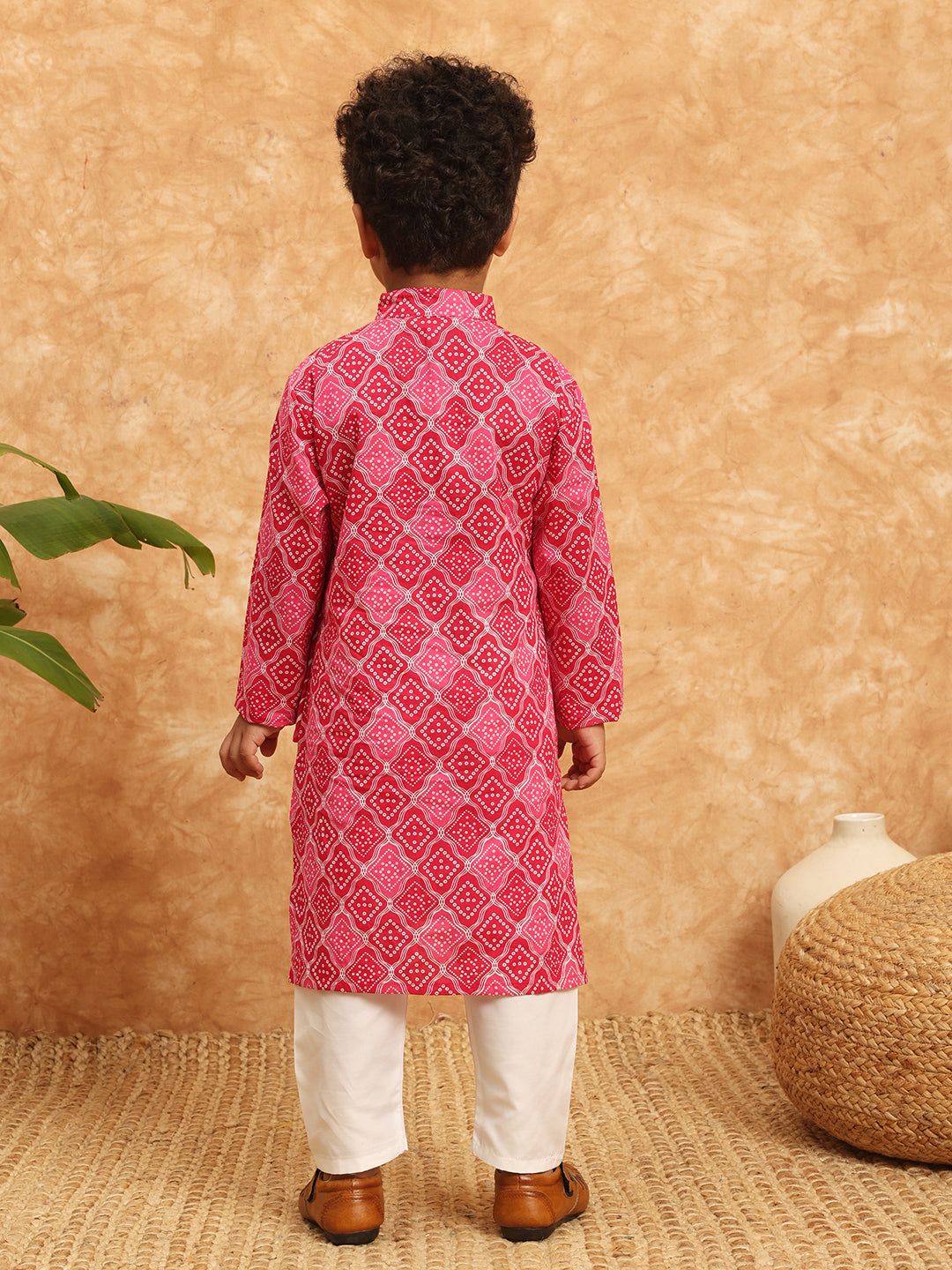 Straight Style Cotton Fabric Pink Color Bandhani Kurta And Pajama