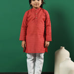 Boys Straight Style Cotton Fabric Rust Color Chikankari Kurta And Pyjama