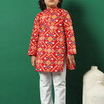 Boys Straight Style Cotton Fabric Red Color Printed Kurta And Pyjama
