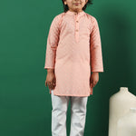 Boys Straight Style Cotton Fabric Peach Color Chikankari Kurta And Pyjama