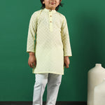 Boys Straight Style Cotton Fabric Yellow Color Chikankari Kurta And Pyjama