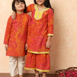 Boys Straight Style Cotton Fabric Pink And Orange Color Floral Printed Kurta And Pyjama