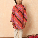 Boys Straight Style Cotton Fabric Red Color Printed Kurta And Pyjama