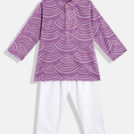 Boys Straight Style Cotton Fabric Purple Color Bandhani Printed Kurta With Pyjama