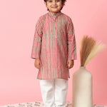 Boys Straight Style Cotton Fabric Red Color Floral Printed Kurta And White Color Pyjama