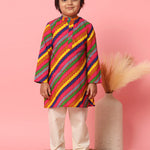 Boys Straight Style Cotton Fabric Multi Color Bandhani Printed Kurta With Pyjama