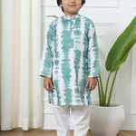Boys Straight Style Cotton Fabric Green Color Tie And Dyed Kurta With White Color Pyjama