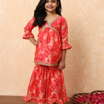 Girls Frock Style Art Silk Fabric Pink Color Printed Kurti And Sharara With Gotta Lace Work