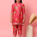 Girls Frock Style Art Silk Fabric Pink Color Bandhani Printed Kurti And Pyjama With Gotta Lace Work
