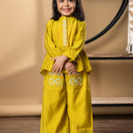 Girls Peplum Style Roman Silk Fabric Gold Color Kurti With Palazzo